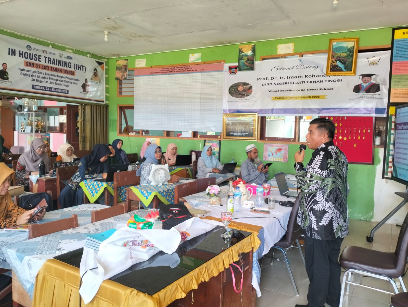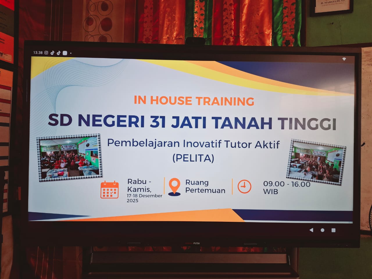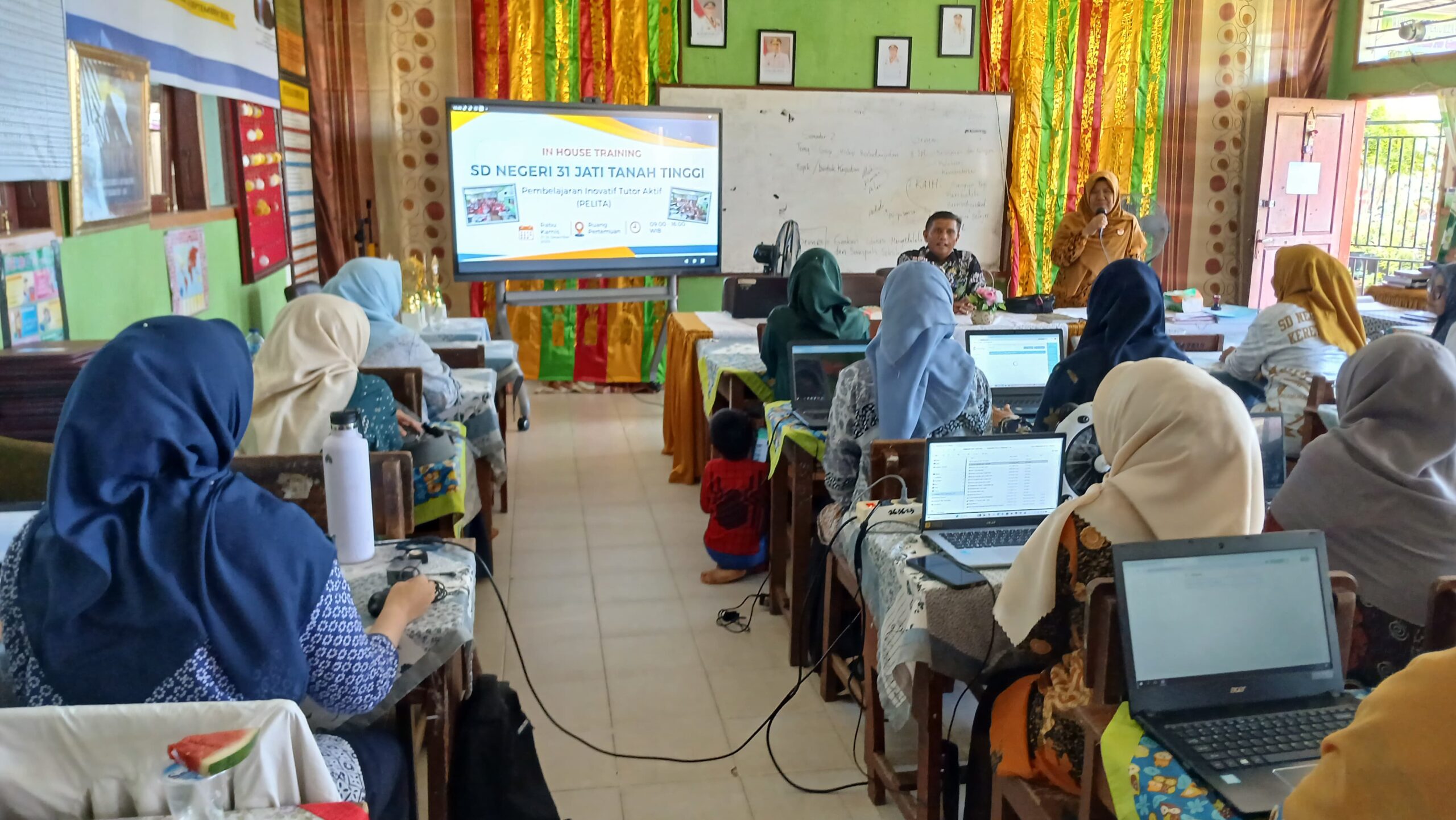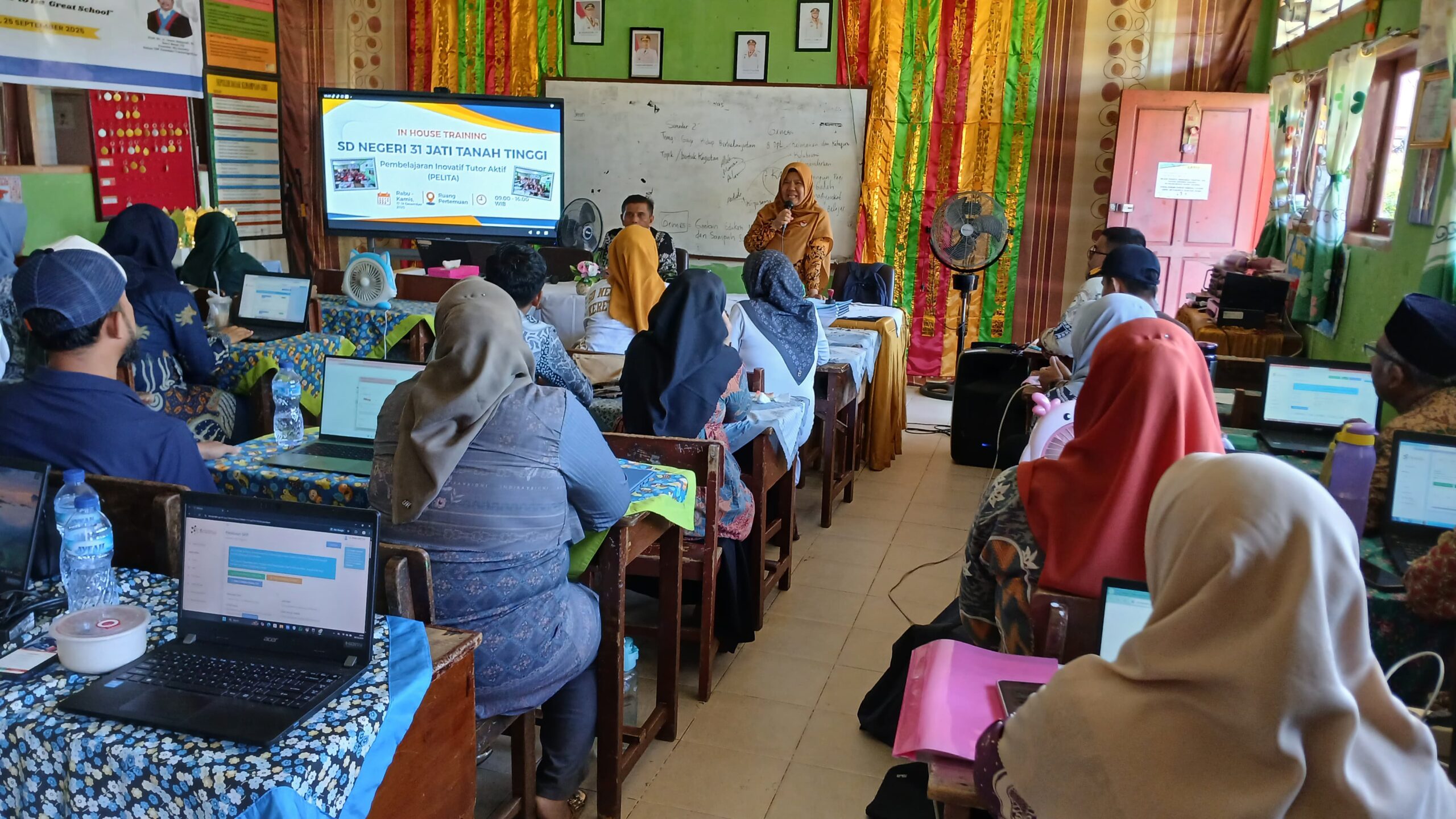 Dalam rangka menyongsong semester kedua tahun ajaran 2025/2026, SD Negeri 31 Jati Tanah Tinggi mengambil langkah proaktif untuk meningkatkan mutu pelayanan pendidikan melalui penyelenggaraan kegiatan In House Training (IHT). Kegiatan yang dilaksanakan pada hari Rabu dan Kamis, tanggal 17 hingga 18 Desember 2025 ini, mengangkat sebuah tema yang sangat relevan dengan kebutuhan pendidikan modern, yaitu “Pembelajaran Inovatif Tutor Aktif”. Selama dua hari penuh, mulai pukul 09.00 hingga 16.00 WIB, suasana Ruang Pertemuan sekolah tampak sangat dinamis dengan kehadiran seluruh majelis guru dan tenaga kependidikan yang penuh antusias mengikuti rangkaian materi. Tidak hanya diikuti oleh internal sekolah, kegiatan ini juga dihadiri dan dipantau langsung oleh Penilik Sekolah, yang memberikan dukungan penuh terhadap upaya pengembangan profesionalisme berkelanjutan bagi para pendidik di lingkungan SD Negeri 31 Jati Tanah Tinggi.