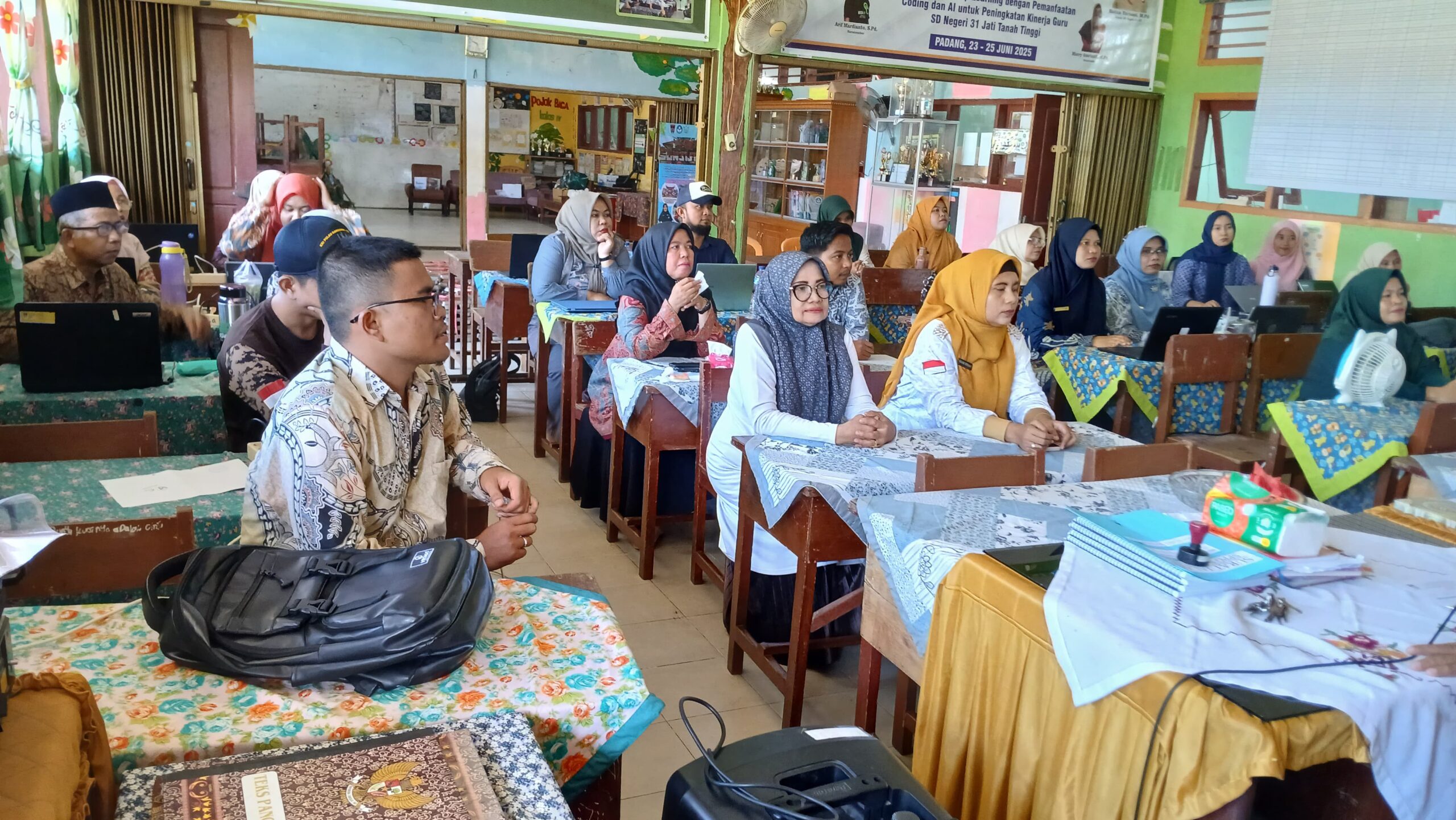 Memasuki hari kedua, intensitas pelatihan tidak berkurang sedikit pun. Ibu Elisa Eviliona hadir memandu materi tentang Perencanaan Pembelajaran Mendalam (Deep Learning). Materi ini sangat penting agar guru-guru tidak terjebak pada pembelajaran yang hanya bersifat permukaan atau sekadar mengejar ketuntasan materi dalam buku teks. Ibu Elisa menjelaskan bagaimana merancang alur tujuan pembelajaran yang mampu merangsang kemampuan berpikir kritis siswa. Pembelajaran mendalam menuntut guru untuk mampu mengaitkan materi pelajaran dengan fenomena nyata di sekitar anak, sehingga siswa merasakan kegunaan dari ilmu yang mereka pelajari. Para guru di SD Negeri 31 Jati Tanah Tinggi dilatih untuk menyusun modul ajar yang lebih kreatif, menggunakan metode yang bervariasi, dan memastikan bahwa setiap menit di dalam kelas menjadi pengalaman intelektual yang berkesan bagi setiap anak didik.