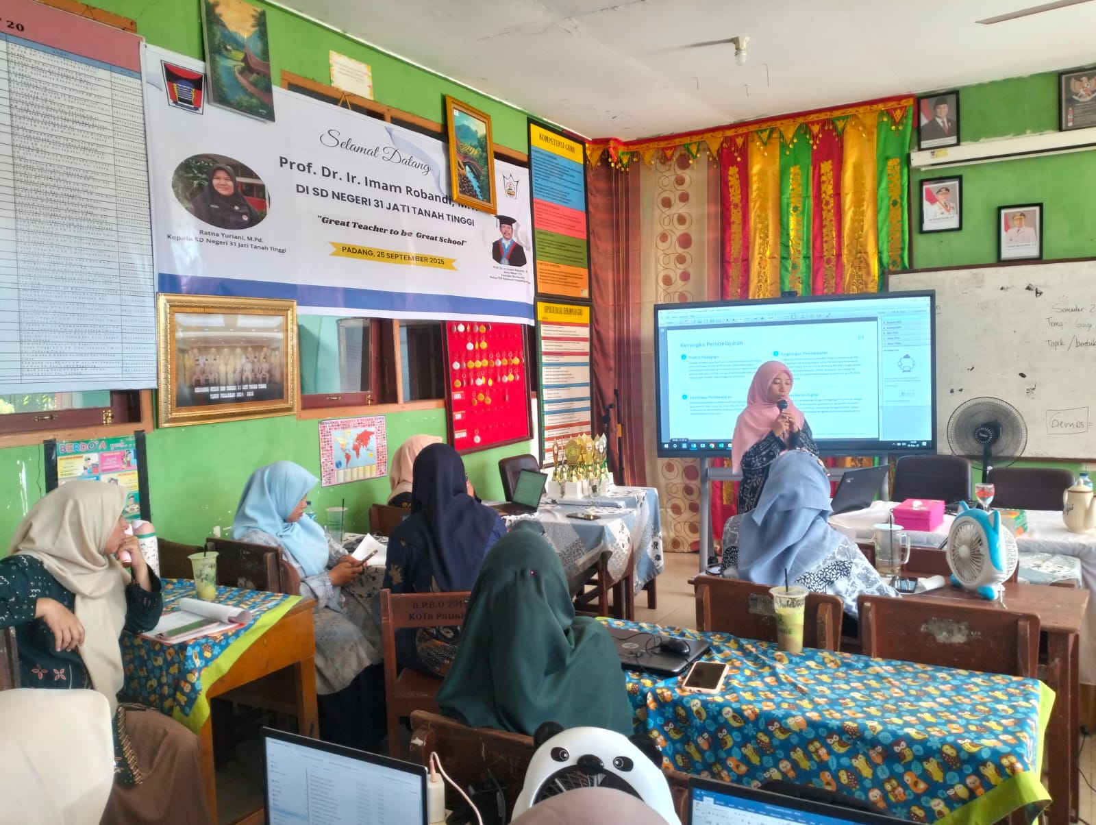 Sesi terakhir dalam rangkaian IHT ini ditutup dengan materi yang sangat teknis namun krusial, yaitu Asesmen Pembelajaran di Kelas yang disampaikan oleh Putri Nelkartika. Beliau menekankan bahwa asesmen atau penilaian tidak boleh lagi dianggap sebagai alat untuk menghakimi kemampuan siswa, melainkan sebagai sarana untuk memperbaiki proses pembelajaran. Putri Nelkartika memaparkan berbagai instrumen asesmen formatif dan sumatif yang inovatif, yang dapat membantu guru memetakan kekuatan dan kelemahan siswa secara akurat. Dengan pemahaman asesmen yang benar, guru-guru SD Negeri 31 Jati Tanah Tinggi diharapkan dapat memberikan umpan balik yang konstruktif kepada siswa dan orang tua, sehingga evaluasi di akhir semester dua nanti benar-benar menggambarkan perkembangan kompetensi siswa secara utuh dan autentik.